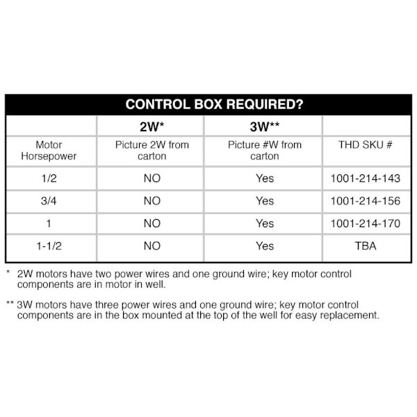 Submersible potable water well pump to install in wells with a minimum 4 in. internal diameter casing. This efficient design is capable of lifting water from deep well applications. 3-Wire motor design requires control box, sold separately.