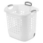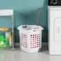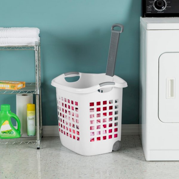 The 1.75 Bu. / 62 Liter Ultra Wheeled Laundry Basket is the best combination of basket and hamper. It combines the valued features of portability and capacity. It offers smooth gliding wheels and a retractable handle that pulls up to easily transport clothes to and from the laundry room or bedroom. The hole pattern allows clothes to remain well ventilated and integrated handles allow for easy carrying up and down stairs.