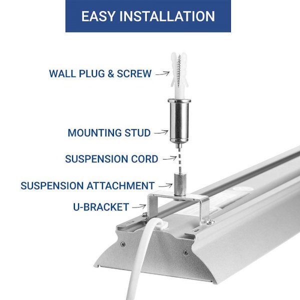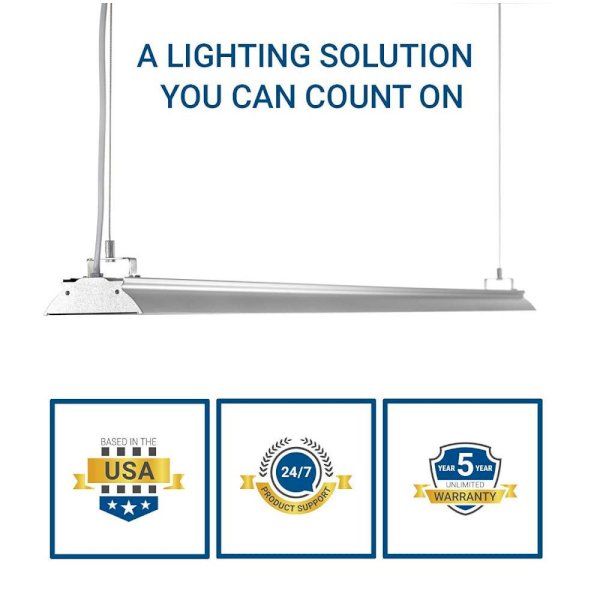 Hyperikon’s Shop Lights are the perfect lighting solution for illuminating your garages, basements, work areas, utility rooms, recreation rooms, and more. A rigid yet lightweight aluminum body design and low-profile lighting design make it easy to hang up with the included hardware or flush mount to a ceiling. This fixture packs an impressive 129 Lumens/Watt and is designed to illuminate even the darkest of spaces while using far less energy than its fluorescent counterparts.