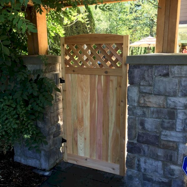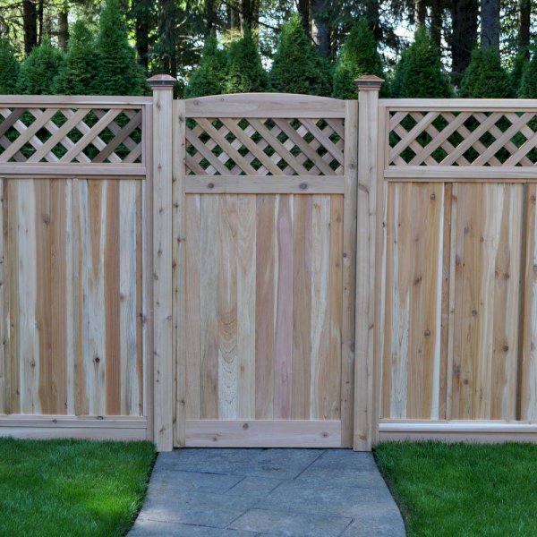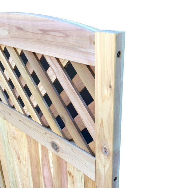 Experience the aroma and long lasting beauty of a Western red cedar fence gate. Cedar gives a feeling of warmth and compliments the natural surroundings, while adding charm to your outdoor living space. Well known for its natural oils, western red cedar resists decay and withstands harsh environments. Constructed with the highest quality, hand selected Western red cedar featuring an arch top diagonal lattice design. Its structure is stable, durable, and ready to withstand the elements for years of quality performance. This gate is manufactured using corrosion-resistant fasteners and features tongue-and-groove milled fence boards to help provide privacy. Easy to install and used for many applications residential or commercial. Hinges can be installed on the right or left side. Cedar fence gates are the perfect addition to your fence or arbor project.