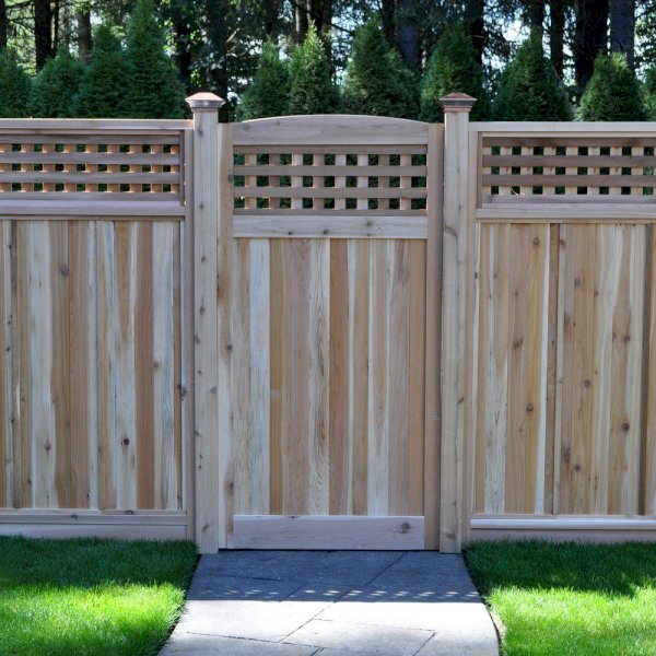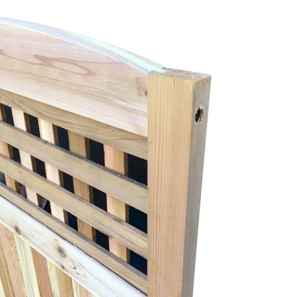 Experience the aroma and long lasting beauty of a Western red cedar fence gate. Cedar gives a feeling of warmth and compliments the natural surroundings, while adding charm to your outdoor living space. Well known for its natural oils, western red cedar resists decay and withstands harsh environments. Constructed with the highest quality, hand selected Western red cedar featuring an arch top checker lattice design. Its structure is stable, durable, and ready to withstand the elements for years of quality performance. This gate is manufactured using corrosion-resistant fasteners and features tongue-and-groove milled fence boards to help provide privacy. Easy to install and used for many applications residential or commercial. Hinges can be installed on the right or left side. Cedar fence gates are the perfect addition to your fence or arbor project.