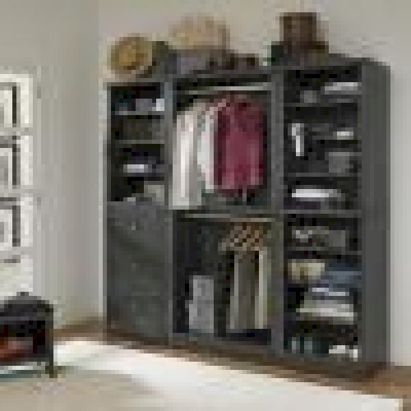 2-Drawer Black Mid-Century Modern Open Wardrobe Armoire Closet
