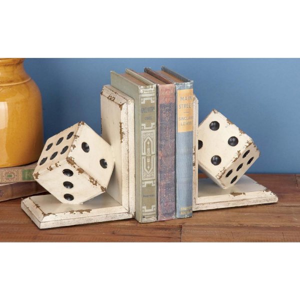 8 in. x 6 in. Rustic Wooden White Dice Bookends
