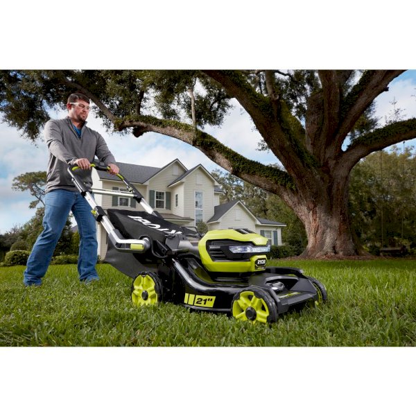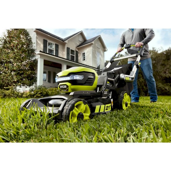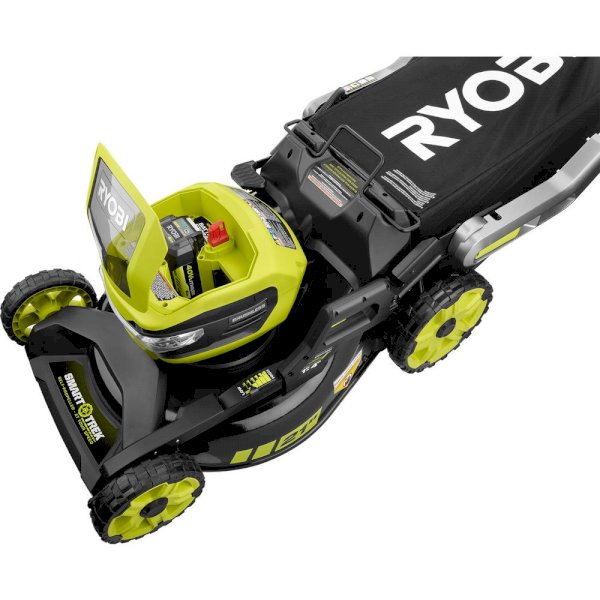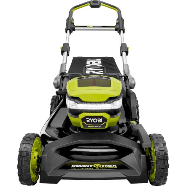RYOBI is leading cordless innovation with the introduction of the RYOBI 40-Volt 21 in. SMART-TREK Self-Propelled Mower. This self-propelled mower features SMART TREK technology that adapts to the user's walking speed and has rear wheel drive for increased traction when mowing your yard. The brushless motor delivers gas-like power combined with load sensing technology that detects and delivers the power needed to maintain an optimal cutting speed, resulting in maximum power and run time. Featuring a 21 in. durable steel deck, this mower was redesigned with a 7-position single-point height adjustment (ranging from 1-1/2 in. - 4 in.) that allows you to select your mowing height with one single motion. Choose which mowing option is best for you with the 2-in-1 mulching or bagging capability, or the side discharge accessory sold online. When the job is done, simply remove the Easy-Lift Single-Motion lock and release bagger to empty your grass and place back down to easily lock it back into place. The collapsible step-to-release handles offer a variety of storage options for compact spaces. The 6.0 Ah 40-Volt Lithium Ion high capacity battery offers extended run time, and is compatible with all RYOBI 40-Volt tools. Backed by a 5-year warranty.