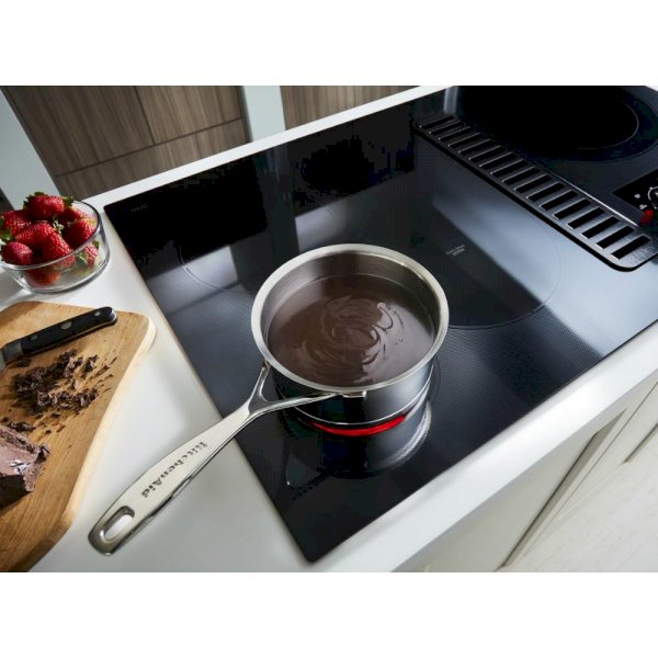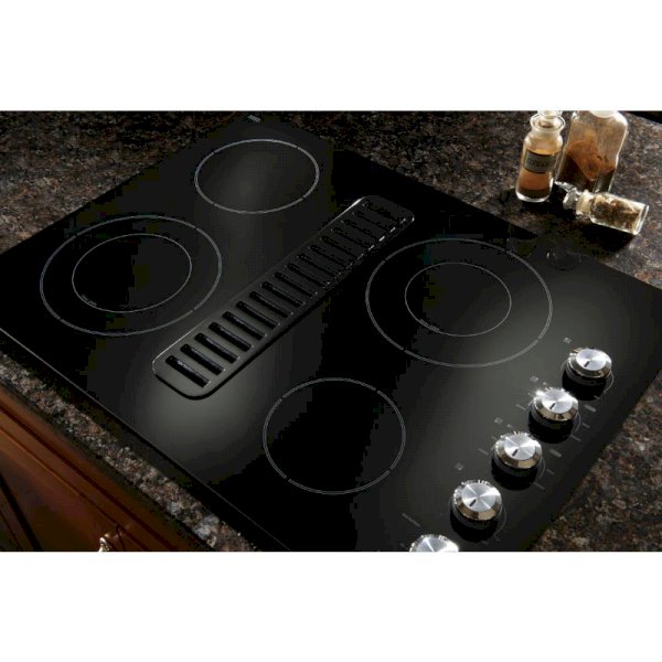 This 30 in. electric cooktop features Downdraft, an integrated ventilation system that doesn't require a separate hood. A 10 in. EVEN-HEAT Ultra element provides versatility for both high and low-temperature cooking and has multiple simmer settings. And with a 3-speed fan with 300 CFM exhaust rating, the venting can keep up with your culinary feats.