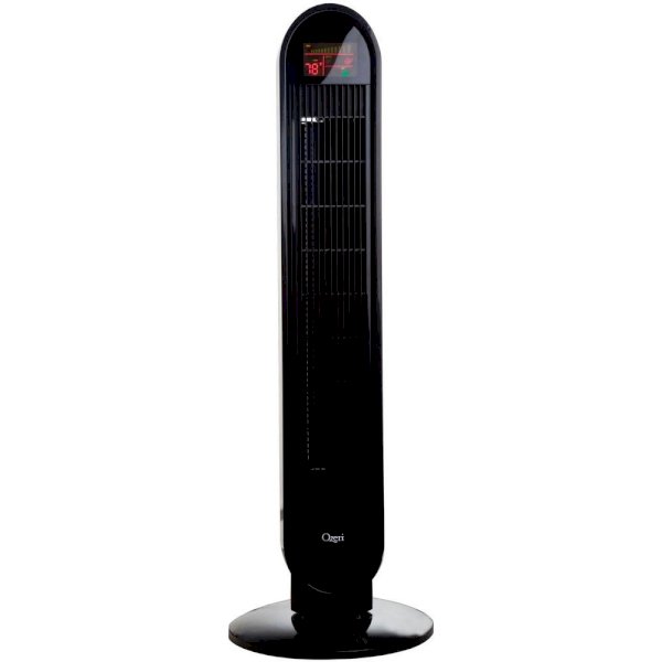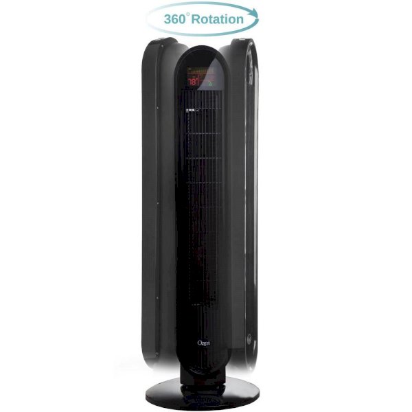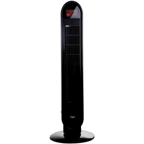 Boasting innovative technology, the Ozeri 38 in. Tower Fan oscillates at 60, 90, 120 or 360 degrees for partial to complete air circulation with three whisper-quiet speed settings. Utilizing advanced cylindrical motion technology with over 200 noise-reducing micro-blades, the fan achieves remarkable airflow velocity while remaining impressively quiet. It offers three whisper-quiet speed settings for customized airflow and three preprogrammed airflow patterns designed to foster sleep, relaxation and comfort. With up to 360-degree oscillation, the fan efficiently provides timely relief on a sweltering summer day or refreshing circulation all year long. The 8-hour timer can be easily programmed in 30-minute increments, and a multi-colored LCD displays all fan functions and the room temperature. All features including the timer are easily controlled via the included extended-range remote or the front control buttons.