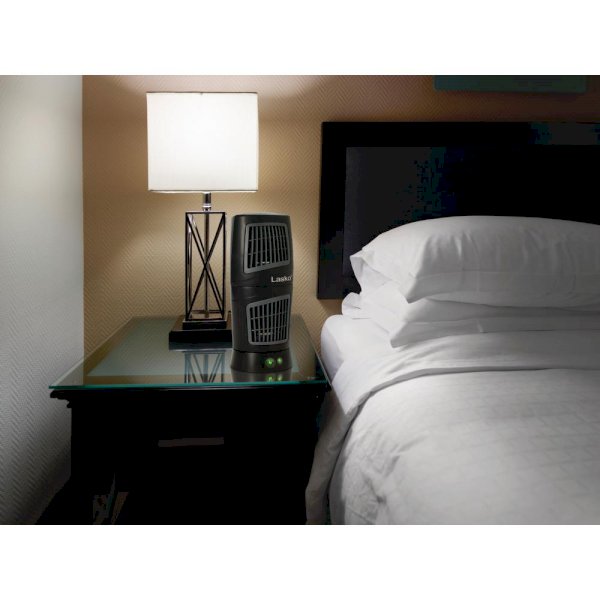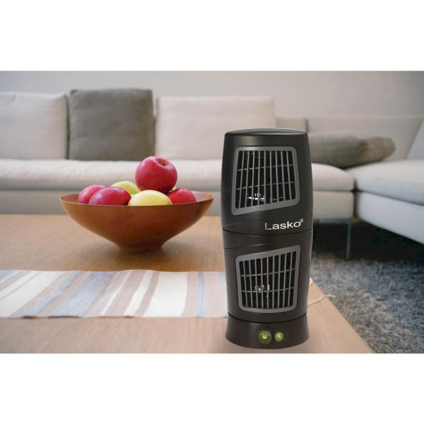 This unique 12 in. Twist-Top Tower Fan from Lasko is the perfect companion for your days at the office. You won’t sweat the deadlines with this convenient desktop design featuring a pivoting top module that enables air movement in two stationary directions, while the oscillation function provides even greater coverage to keep you refreshed. Easily portable with its carry handle, it operates at three quiet speeds for all-season comfort.