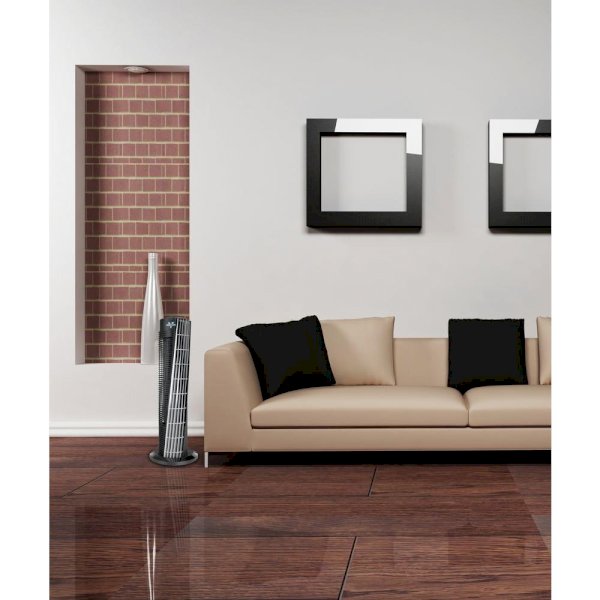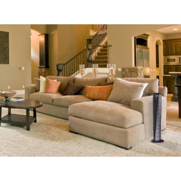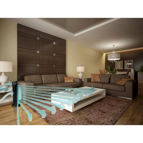 The Vornado 154 Tower Circulator offers a more effective way to move air with V-Flow Circulation. Typical tower fans oscillate due to a limited range of air movement, so you feel the airflow for only seconds at a time. With V-Flow Circulation, a high volume of air is continuously moving throughout the room, creating quiet, comfortable whole room circulation. The Vornado Tower Circulator features uniquely contoured air outlets that create a wide span of constant airflow, without the need for oscillation. A powerful, yet quiet motor pushes air up to 80 ft. The 154 Tower Circulator features a sturdy base, an energy saving timer, and 4-speed setting that allow you to tailor the airflow to your needs. The push-button remote control magnetically cradles to the top of the product, so it is always within easy reach. 5 year limited warranty.