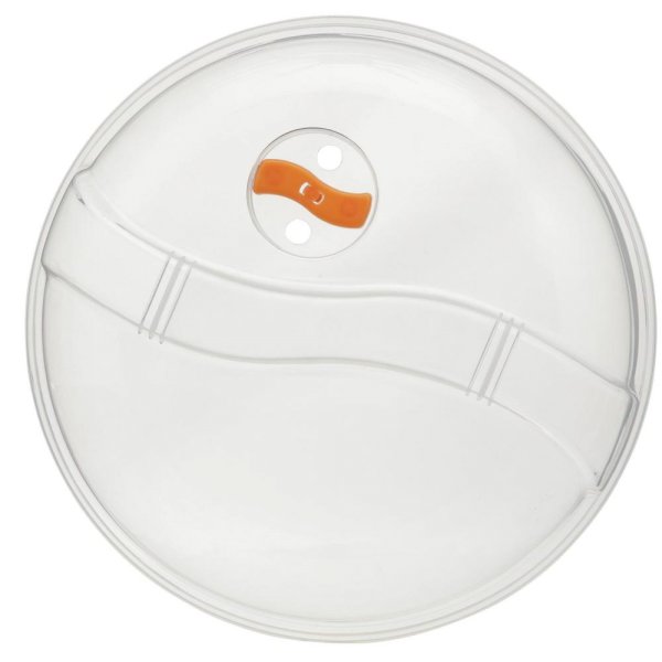 Keep your microwave free of splatters with this microwave plate cover. Made from heavy duty plastic, it features a small vent at the top to release steam when heating food. This durable cover fits on a 10-in. dinner plate.