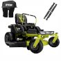It's time to turn away from gas and towards the RYOBI 48V Zero Turn Electric Riding Mower. Powered by 100 Ah Batteries and 4 High-Powered Brushless Motors, this mower can cut up to 3 acres on a single charge. The durable 42 in. steel deck is equipped with 2 precision cut steel blades. Combined with aggressive zero turn technology, the 12-Position Manual Deck Adjustment provides a clean cut to your lawn every time. The advanced control panel activates the blades, slow speed function, LED headlights, and displays the battery level and run-time. The rear access charging port makes charging your rider easy when the job is done. The RYOBI 42 in. 2-Bin Soft Bagger includes all the necessary components for a quick and easy tool-free installation. The included bagging blades work with the nylon mesh bin design providing superior airflow for ultimate bagging performance. It also includes a durable high-density poly ethaline tube, specifically designed for the RY48ZTR75 and RY48ZTR100 for optimized run time. This bag kit has a large 6.25 bushel capacity with independent bins for easily discharging grass clippings.