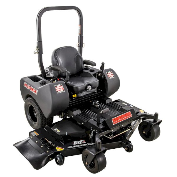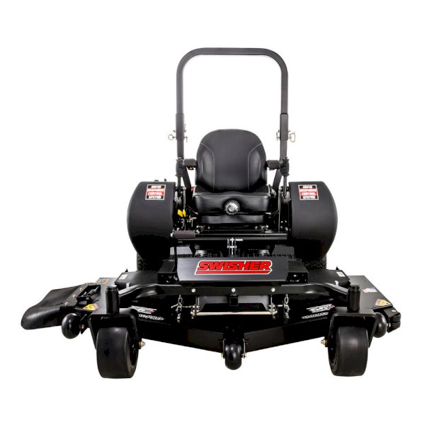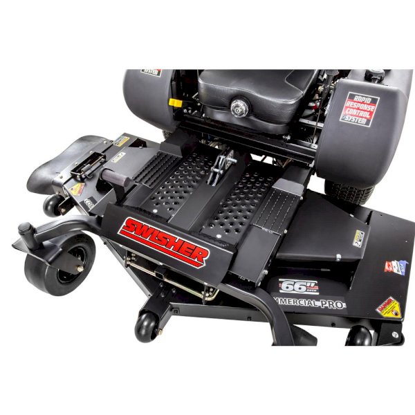 Got grass, tired of mowing it, Swisher's 66 in Electric Start Commercial Grade Zero Turn Riding Mower will turn a tedious chore into a fun and relaxing ride. Both powerful and affordable, the Kawasaki 24 HP (726cc) engine and the heavy-duty commercial-grade welded steel frame, combined with the Hydro Gear 3100 transmission and Ogura clutch, will have you finished with your yard in a fraction of the time. Sail across the landscape at 8 MPH in both forward and reverse. Achieve a beautiful and professional cut with the robust 11-Gauge fabricated cutting deck and the commercial-grade cast iron blade spindles with three G6 Gator mulching blades. The mower deck adjusts effortlessly to height ranges of 1.5 in. - 4.5 in. with the foot-assisted deck lift. Swisher's patented Rapid Response Control System gives you superior control and comfort, while the fluid 360° turns and low center of gravity offer ultimate maneuverability. The steel floor pan, adjustable high-back suspension seat, full-engine wrap, composite fenders with integrated storage, battery compartment, cup holder, hour meter, 12-Volt adapter, 8 Gal. fuel capacity, and a front and rear hitch make this the ideal machine for your property. The Swisher Zero Turn is so enjoyable; you may even want to tackle your neighbor's yard. Get in the driver's seat, ROPS standard. CARB Compliant.