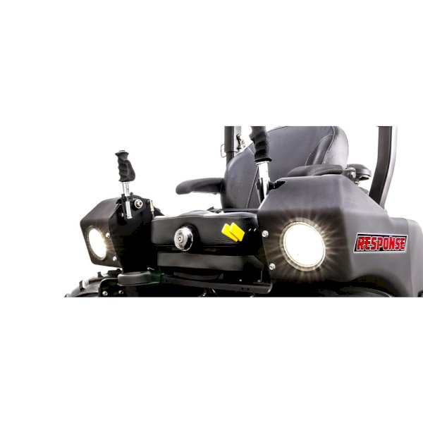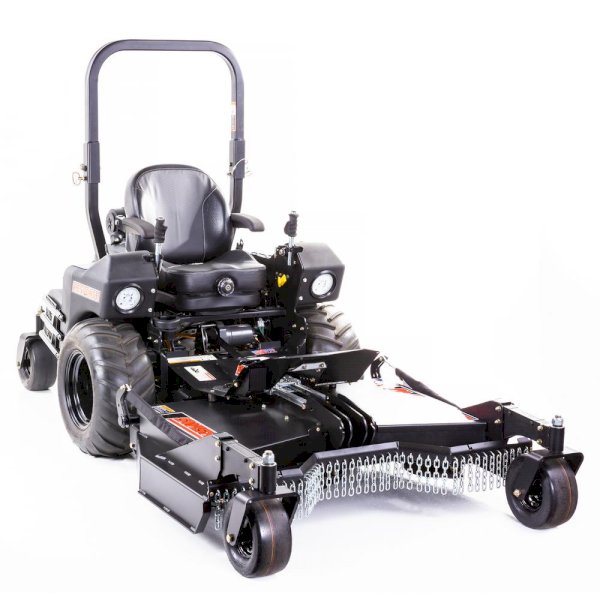 Looking for a Zero Turn Mower that can do it all. The Swisher BIG MOW is the machine for you. This rough cut mower is powered by a Commercial Grade 31 HP (999 cc) Kawasaki engine. Mow longer with two 4 Gal. fuel tanks. Foldable roll over protection system and a seat belt is standard. The professional high back suspension seat provides a smooth ride that is fully adjustable. The ergonomic Patented Rapid Response Control System makes steering a breeze and keeps your arms in a comfortable position. The 51 in. fabricated deck with 6 swing away duel sided cutting blades powers through heavy undergrowth and tree saplings up to 3 in. without hesitation. The front mount deck design is a must have for mowing under low clearance obstacles and for maximum visibility of the mowing path. The heavy-duty 3/16 in. front chain debris guard keeps the brush under the deck. The deck height adjustment is electronically controlled and tilts up for easy cleaning. The tool free hinged belt covers provide easy access to maintenance and cleanup. Large chevron tread tires keep you moving on difficult terrain and are powered by twin commercial grade Hydro Gear 3400 transmissions. Other features include dual LED headlights, cast iron blade spindles, steel floor pan, 12-Volt adapter, hour meter, cup holder and heavy-duty, composite fenders with integrated storage and a battery compartment. The Swisher Commercial grade BIG MOW rough cut can tackle the toughest mowing jobs.