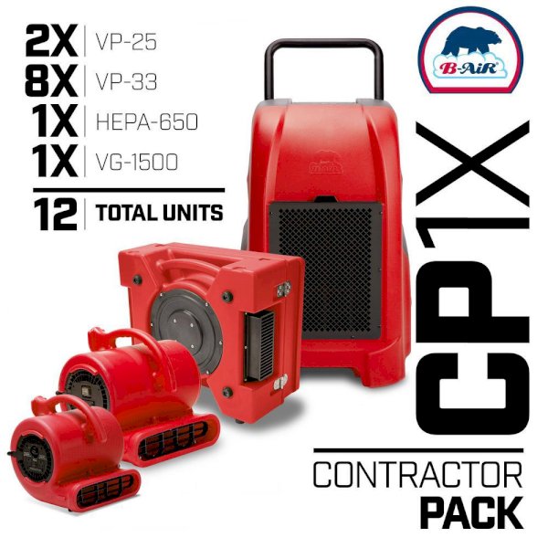 These packs are designed with the water damage restoration professional in mind. Whether you are starting a new water damage restoration business or want to add to your already existing line of equipment, the B-Air Contractor Packs offer you a variety of combinations. This includes air movers, commercial dehumidifiers as well as air scrubbers with special value pricing.