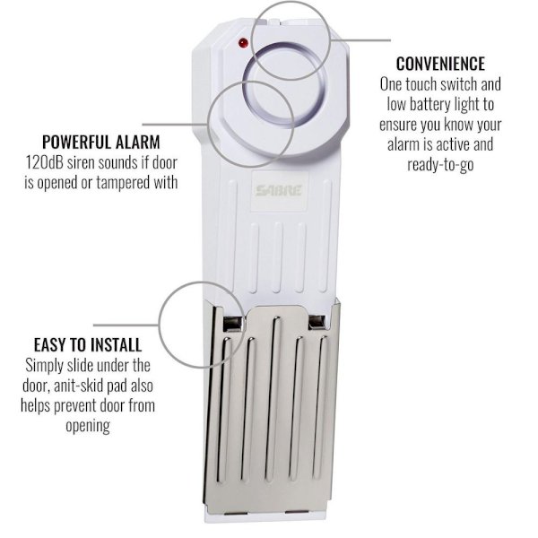 A must have for dorms, apartments, and hotels. The 120dB door stop alarm has a door wedge design and non-skid pad help prevent door from opening. The siren is activated by attempted door opening.