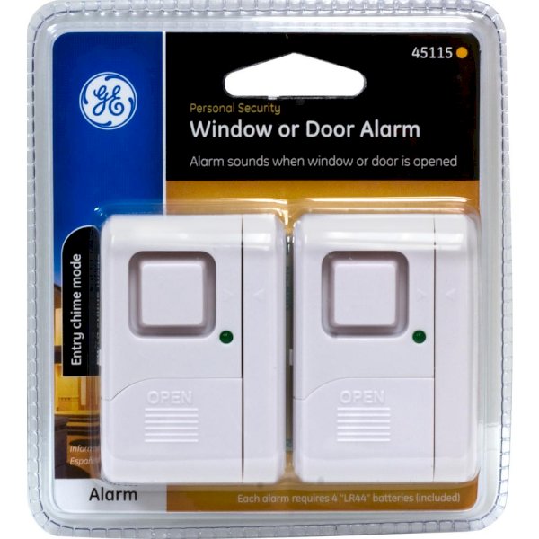 The GE Personal Security Window/Door Alarm provides a simple-to-use, cost-effective security solution to protect you and your family against home invasions thanks to the 120 dB alarms, loud enough to make a would-be intruder think twice about entering through your doors or windows. The alarm is also extremely easy to use. The window/door alarms feature a contemporary design with easy access buttons and controls for simple operation. This straightforward concept makes using the GE Personal Security Window/Door Alarm intuitive, no matter what your technological skills may be. The GE Personal Security Window/Door Alarm also includes two independent window/door alarms, each with a built-in 120 dB alarm for even greater home security. With no wires required for installation, protecting any window/door in your home is as easy as attaching the alarm to your window/door with double-sided tape (included). Each window alarm features an on/off/chime switch for easy operation and a low battery test button for checking battery life. Perfect for homes, apartments, dorm rooms and offices.