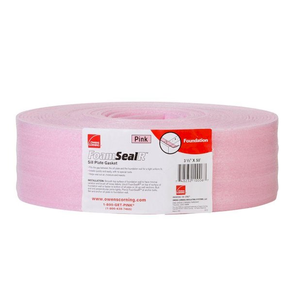 A simple, effective, long-lasting solution to air infiltration, FoamSealR sill plate gasket provides a seal against air leakage, moisture and insect intrusion at the juncture of the foundation wall and sill plate in new and retrofit construction. FoamSealR sill plate gasket is made of polyethylene foam, offering exceptional durability. Use also in window and door frame openings or around building sections or panels. This product should be installed in accordance with applicable building codes.