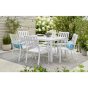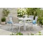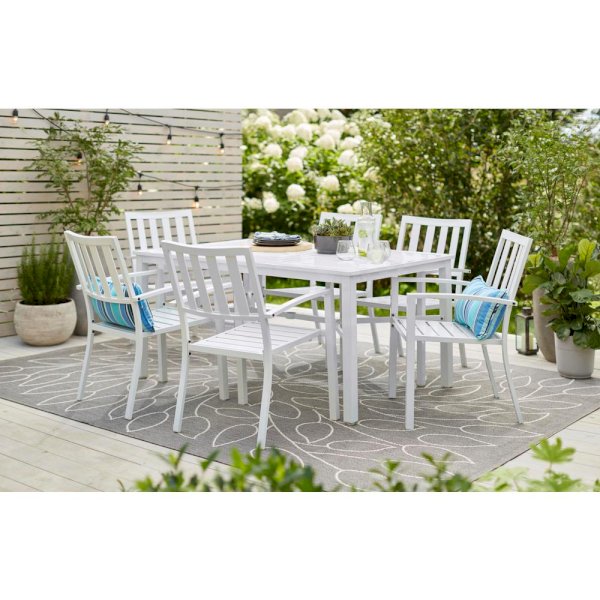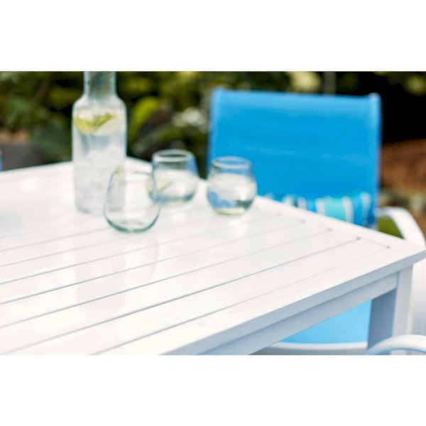 Create a complete outdoor living scene with this 60 in. x 37 in. rectangular slat-top dining table. Use this table to mix and match with any chair as it's apart of the Mix and Match collection. The table seats up to 6 people and has 1/4 in. spaces between slats for guests to sit cups or glasses easily. Seal your outdoor area's style with the stylish finish of this steel table. It's a great place to entertain family and friends in your backyard.