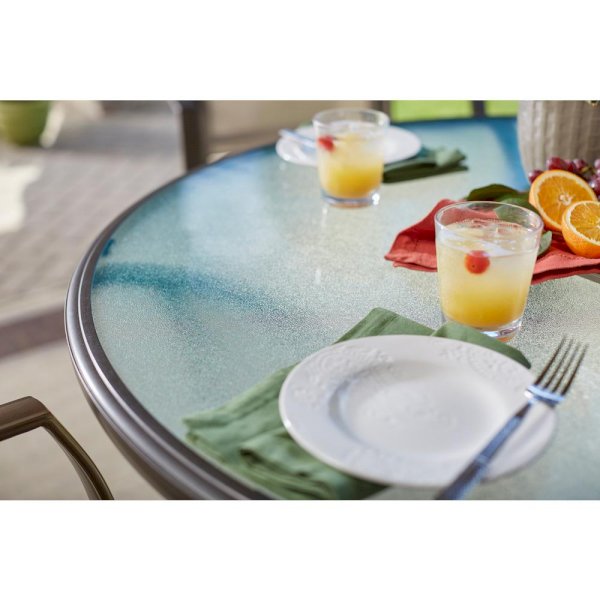 Create a cozy outdoor dining space with this Commercial Grade Aluminum Brown Round Outdoor Bistro Table. Crafted with a stylish glass tempered top, it features a durable, rust-free aluminum frame that makes it perfect for both commercial and residential use. Ideal for both small and large spaces, it boasts a neutral brown finish that complements a variety of seating pieces. Easy to assemble and clean, you will enjoy it season after season.