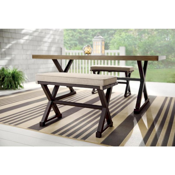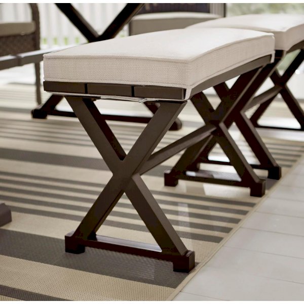 Create a customized outdoor space with this 2-person mix and match bench. The powder-coated steel frame is rust-resistant so you can enjoy this bench season after season. The UV-resistant seat cushion has ties to keep it from slipping and can be removed when not in use. Include additional seating or make your own set.