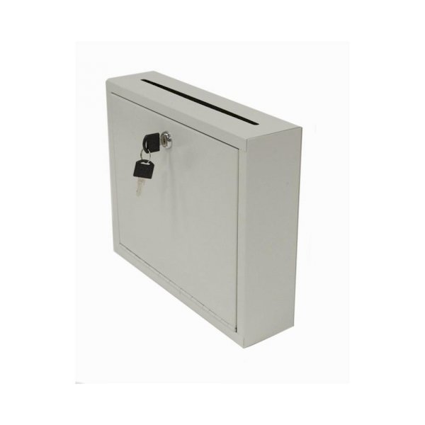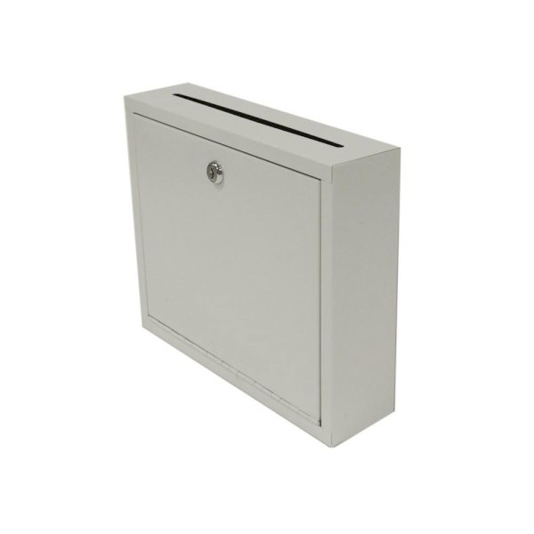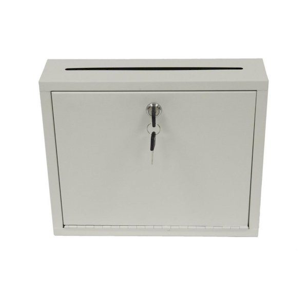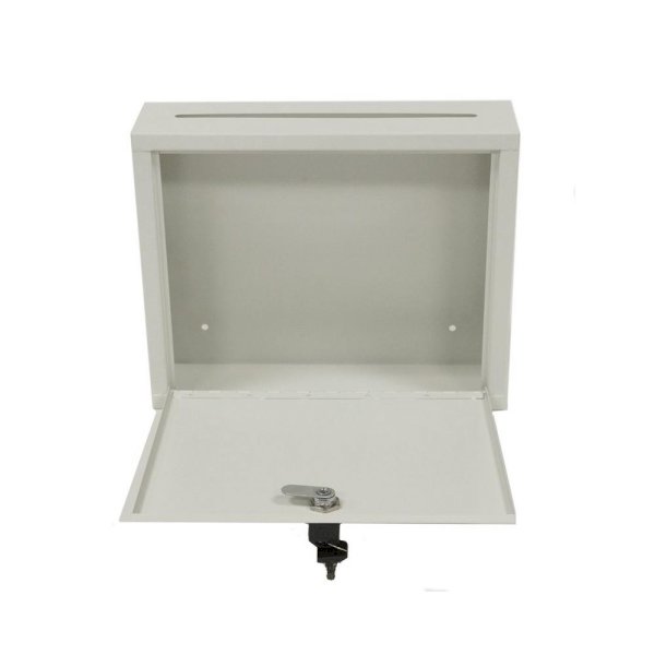 The AdirOffice Large Steel Drop Box can be used as a mail collection box for all outgoing or incoming mail. These boxes can also be used to keep private office correspondence confidential. It features a full piano hinged door and is constructed of durable, heavy-gauge steel with a scratch resistant finish. The drop slot measures 10 in. W x 5/16 in. D and the box measures 12 in. x 3 in. x 10 in. These sturdy units mount securely to any wall or door. It includes a durable lock with 2 keys.