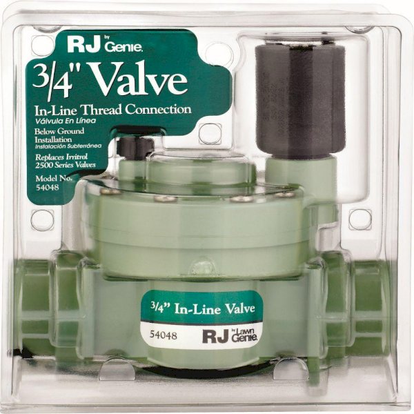 This durable Lawn Genie 150 psi RJ In-Line Valve can be installed in a valve box below ground for seamless landscaping and with a flow-through design, is ideal for potable and dirty water applications. This in-line valve features an external bleed function and a pressure-activated double-beaded diaphragm to strengthen the seal between the body and bonnet. The valve's low-voltage 24 VAC solenoid with captured plunger and a stainless-steel metering pin are built for durability and longevity.
