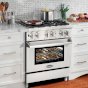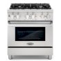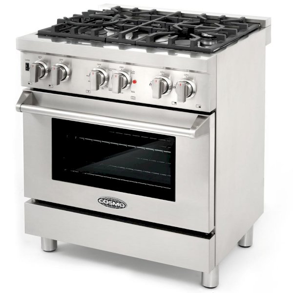 Bringing professional style and performance to your home kitchen, Cosmo's COS-DFR304 30 in. 3.9 cu. ft. single oven dual fuel range is a durable workhorse. 4 Italian made sealed gas burners allow you to cook a variety of different food and sauces: 18,000 BTU, 13,000 BTU, 8,500 BTU and 4,200 BTU. The electric oven utilizes Turbo True European Convection to ensure you have perfect, evenly cooked meals. Four special oven functions let you select the right cooking mode for everything from juicy roasts to sweet, delicate desserts. Made to last, this dual fuel range is constructed with industrial grade corrosion resistant 304 stainless steel. A removable backsplash makes this 30 in. range suitable for either freestanding or slide-in installation.