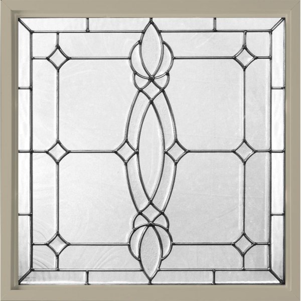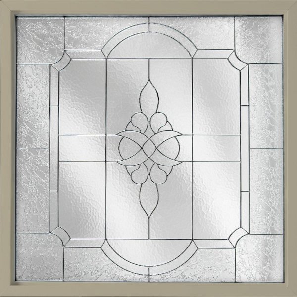 25 in. x 25 in. Decorative Glass Fixed Vinyl Window Victorian Glass, Nickel Caming in Tan