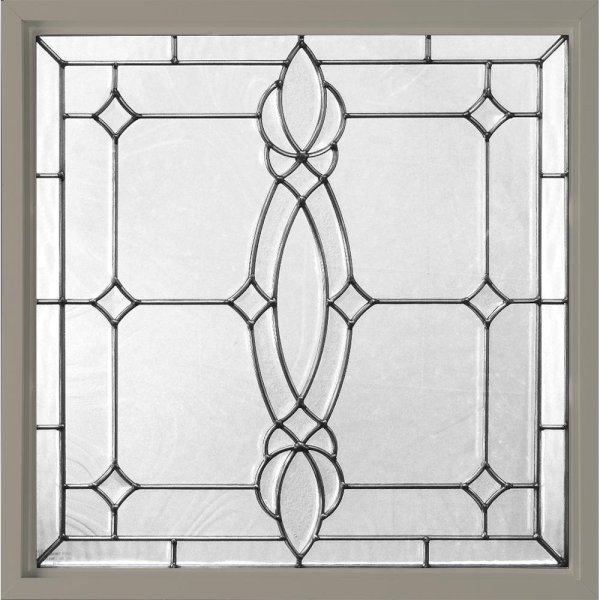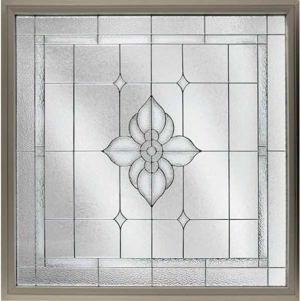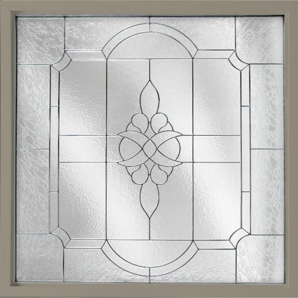 25 in. x 25 in. Decorative Glass Fixed Vinyl Window Craftsman Glass, Nickel Caming in Driftwood