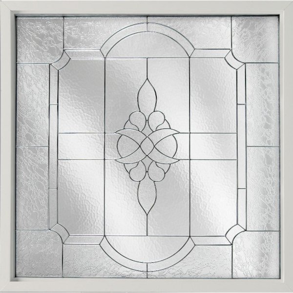 47.5 in. x 47.5 in. Decorative Glass Fixed Vinyl Window Victorian Glass, Nickel Caming in White