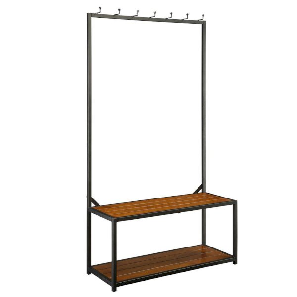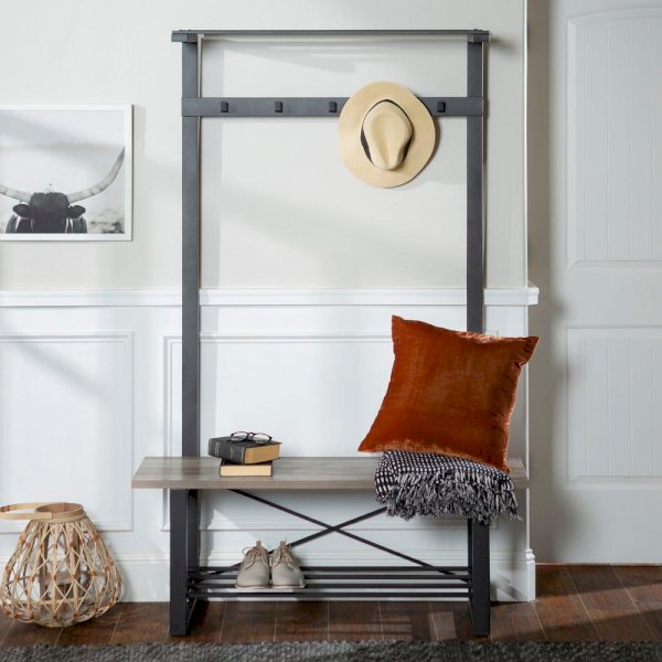 Forest Grove Rustic Gray Wood Veneer Entryway Hall Tree with Storage Bench