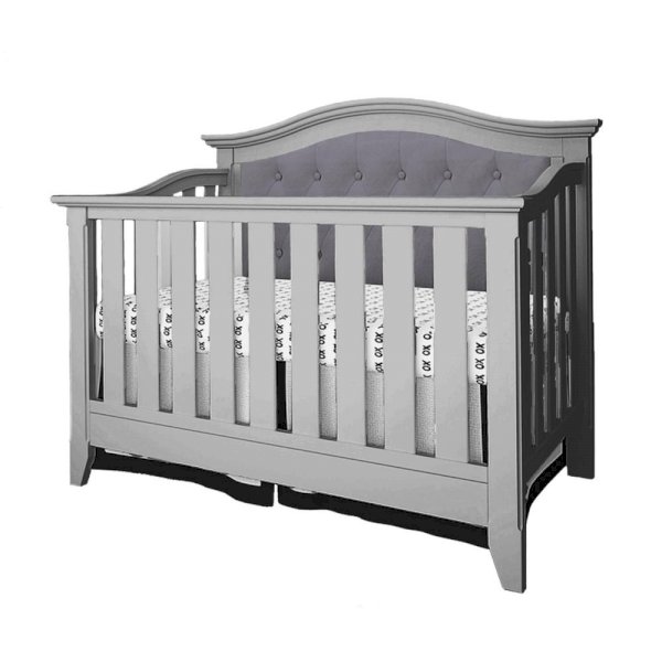 Bentley White Gray Linen Tufted Upholstered Convertible Crib