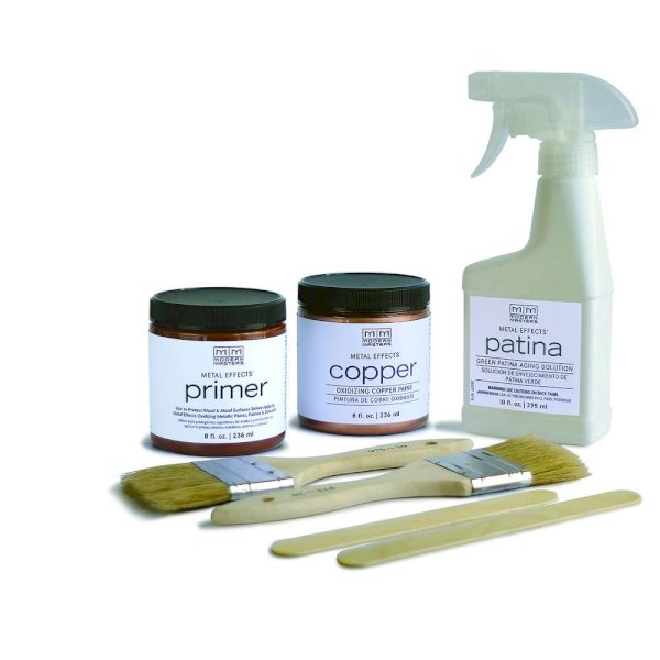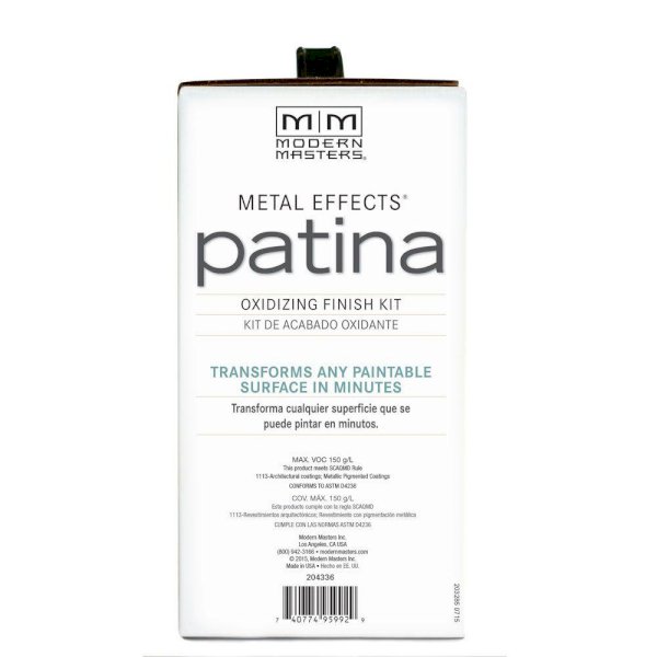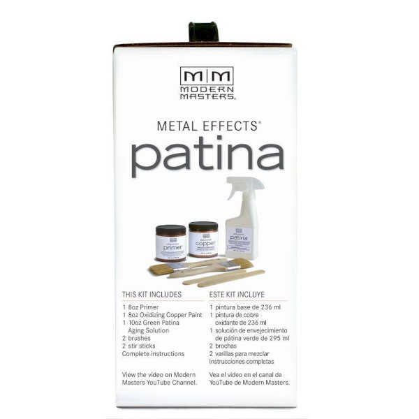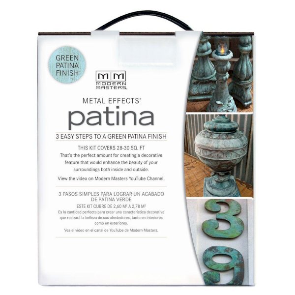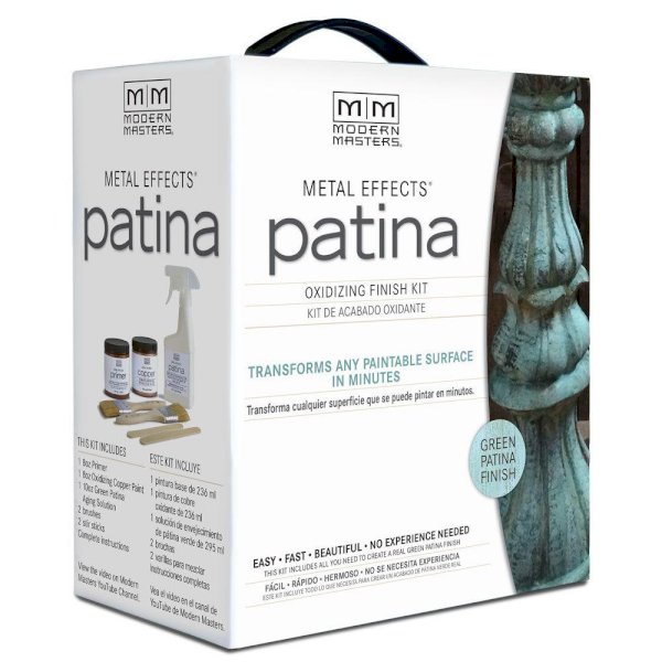 Modern Masters Green Patina Metal Effects Paint Oxidizing Finish Kit creates a beautiful oxidized metal finish on any paintable surface. Kit includes everything needed to create an accent piece with a distinctive, timeless look on interior or exterior surfaces. Countless, creative uses for this kit are only limited by imagination.