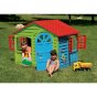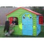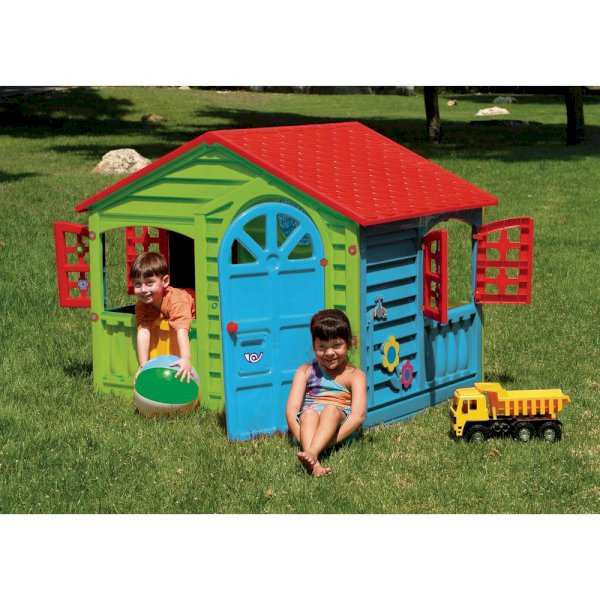 Palplay House of Fun indoor/outdoor play house. House of fun is design for just that, fun, every detail is sculpted into the frame providing the child the feel of a real house. for indoor or outdoor use with vibrant colors and is perfect for both boys and girls. Includes a generous amount of room for several kids to play with working front and back doors and hinged windows that open and shut.