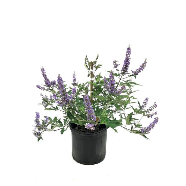 Shoal Creek Vitex, also called Chastetree, is a long-blooming small tree (or shrub) that is often planted around porches, patios, and decks for its beautiful summer flowers and its ability to attract butterflies. Chastetree blooms in the summer in clusters of violet flowers that resemble spikes. Besides its beauty, the leaves of the Chastetree also boast of an aromatic quality. The tree is fast-growing and reaches a height and width of about 12 ft. It is hardy in Zones 6-9 and can be planted in full sun or partial shade. Chastetree thrives particularly well in the heat. The plant is shipped in a #1 pot with a minimum height of 12 in.
