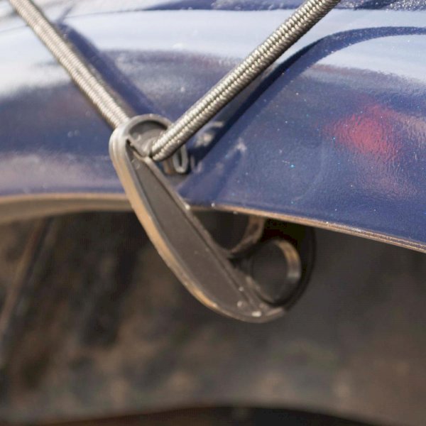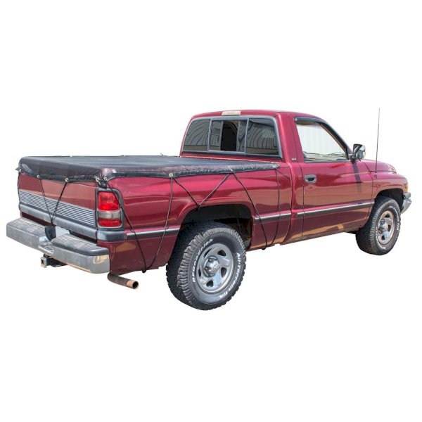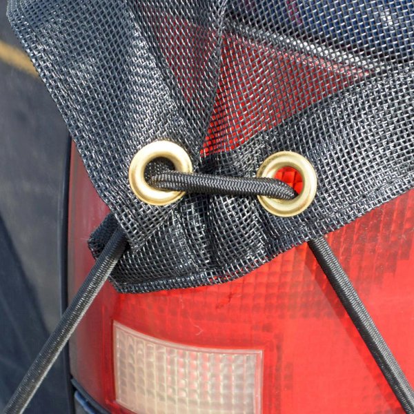 Keep your load secure with the Heavy-Duty Mesh Truck Bed Cargo Net Cover 4 ft. x 6 ft. With a bungee rope and 24 plastic hooks, the fine mesh tarp can be custom fit to any load and truck model. The universal design can fit on all make and model pickups, truck beds, SUVs, trailers, cargo racks, ATVs, and more. The in. thick bungee rope slides through brass grommets spaced every 22 in. 2 dozen 3.5 in. heavy-duty plastic hooks clip on wherever they are needed to secure the load. The fine mesh tarp keeps small items safe and secure. Packaged in a reusable PVC bag so the Cargo Net is easy to store when not in use.