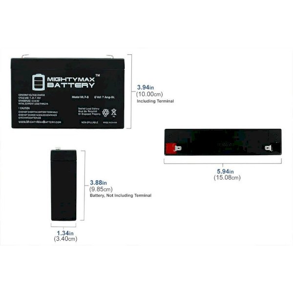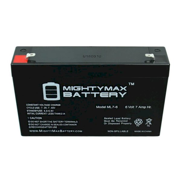 Delivering power when you need it, the MIGHTY MAX ML7-6 6-Volt 7 Ah uses a state of the art, heavy-duty, calcium-alloy grid that provides exceptional performance and service life in both float and cyclic applications. The ML7-6 is an Absorbent Glass Mat (AGM) technology with a valve regulated design, that can be used in enclosed and indoor environments without leaking or maintenance, providing a superior performance for thousands of models. MIGHTY MAX SLA batteries are utilized in a wide variety of applications including, Consumer Electronics, Electric Vehicles, Engine Starters, Golf Carts, Hunting, Lawn and Garden Tools, Medical Mobility, Motorcycles, Power sports, Portable Tools, Solar, Toys and Hobby, Access Control Devices, Emergency Lighting, Security and more.