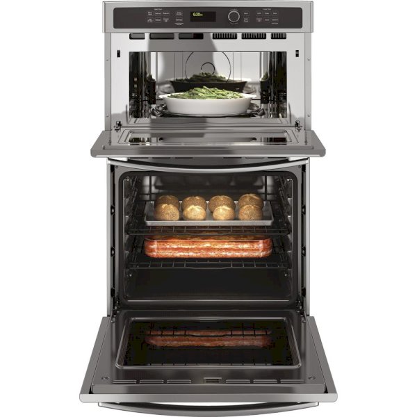 Your 27 in. Electric Wall Oven with Built-In Microwave in Stainless Steel features glass touch electronic controls with a dial to help you quickly and easily set or adjust your oven. The lower oven also features 3 Self-Clean Heavy-Duty Oven Racks that can be configured in 6 positions. GE appliances provide up-to-date technology and exceptional quality to simplify the way you live. With a timeless appearance, this family of appliances is ideal for your family. And, coming from one of the most trusted names in America, you know that this entire selection of appliances is as advanced as it is practical.