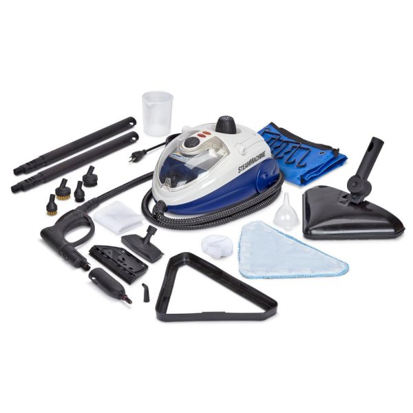 The SteamMachine Elite is our latest steam cleaner. The new triangular steam mop and cleaning pad are perfect for use on ceramic tile, linoleum, vinyl, marble, granite, sealed hard wood and stained concrete. The included accessory storage bag allows you to store your nozzles, brushes and other tools between projects. If youre looking for a quick and easy way to clean your homes floors, bathrooms, kitchen, tiles, and windows, look no further. The SteamMachine Elite is a chemical-free way to make your home look brand new again. This new and improved steam cleaner comes with more accessories, which makes it the perfect upgrade to your cleaning tools.