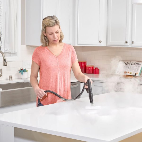 If you’re looking for a quick and easy way to clean your home’s bathrooms, kitchen, tiles, and windows, look no further! The SteamMachine is a great, chemical-free way to make your home look brand new again. The SteamMachine uses pressurized, high-temperature steam to loosen and dissolve dirt, cut grease and grime, expel stains, and sanitize your surface by killing 99% of bacteria. This steamer is versatile and can be used for a wide variety of household cleaning projects. Get the most out of this portable steamer by using the included attachments to steam clean various areas of your home. Once the SteamMachine is turned on and water is added, the unit takes approximately 8 minutes to build pressure and heat up. When the steam pressure is built and the trigger is pulled, the SteamMachine delivers up to 290°F of steam to the surface using 55 psi of pressure. The steam allows deep dirt and grime to release. The included microfiber towel can then be used to wipe away the dirty residue so that you’re left with a shining, new surface.