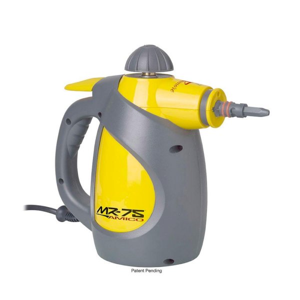 The Vapamore MR-75 Amico hand held portable steam cleaning system is designed to clean and sanitize your entire home. The unit eliminates the need to use toxic and expensive cleaning chemicals and includes a large array of accessories and attachments, more than any other hand held steam cleaner available. The Amico is ready to use in 4 minutes and has a long 10 ft. cord.