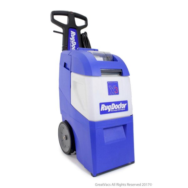 This is a brand new Rug Doctor X3. This is the newest model of Rub Doctor the X3 which folds up small enough to store in a closet or out of your way (see pictures). The handle Adjusts for different heights so if you are tall or short this will be perfect for you. Wide 10.8 in. cleaning path almost an inch wider than the older Mighty pro model. Powerful 28 lbs./sq. in. pump water pressure. Large 3.0 Gal. solution tank capacity. Compare this to most big box shampooers that only have around 1 Gal. tank. This is nice as you wont be filling it up constantly as you shampoo. Vacuum Motor: 1.9 HP with 101 in. (257 cm) water lift - an important feature - vacuum power translates to how quickly carpets are able to dry. Rug Doctor machines remove over 80% of the dirt carrying solution. No department store home units even come close. Great Vacs is a authorized Rug Doctor Dealer. So you will be protected by the 5-Year Rug Doctor warranty. Think about it. All the other shampooers out there only have a 1-year warranty.