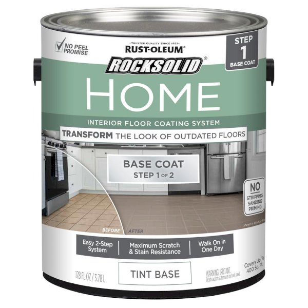 RockSolid Home Interior Floor Coating System provides revolutionary technology in an extremely durable coating for a variety of indoor floors. 2-Step Paint Floor System consists of a separate Base Coat and Top Coat to update the look of any room. This product is the Icy Gray Base Coat. Easy to use transformation requires no stripping, sanding or priming. Use to paint tile, wood floors, vinyl, laminate, concrete, bare concrete and more. Remodel nearly any interior floor in 1-day with no messy demo using a floor paint designed for foot traffic featuring maximum scratch and stain resistance.