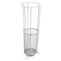 No need to dry your floor anymore. This silver umbrella holder will prevent your floors from getting wet and catch any remaining water dripping from your umbrellas. It is a great storage bin for all of your rain protection. It can even become taller and shorter depending on the umbrellas you have. If you have a tall umbrella, the connector comes up to hold the tells standard umbrella. If you have a small umbrella just push the connector down to have a shorter umbrella stand.
