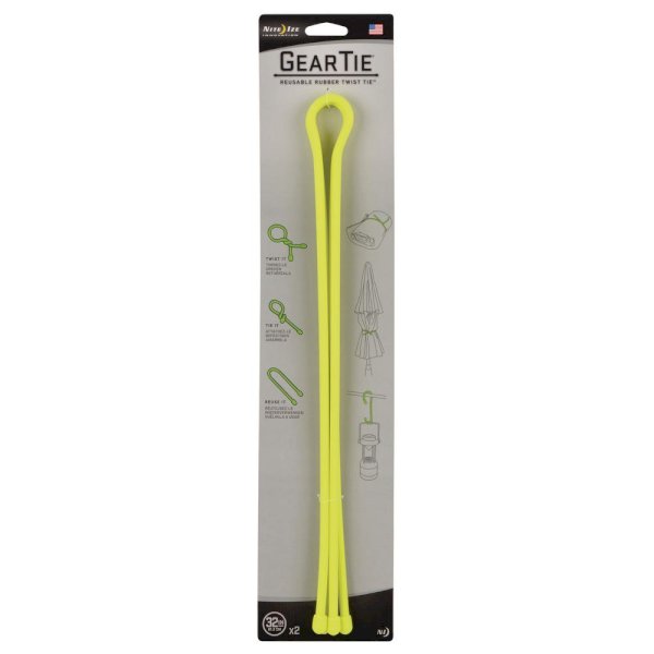 The perfect size for bigger organizational jobs in your home, garage, yard and tool shed the Nite Ize 32 in. Gear Tie bundles garden tools, hoses and industrial appliance cords in a cinch and a twist. Its flexibility (it has a sturdy, bendable interior wire and a durable, waterproof rubber exterior) makes it endlessly versatile and useful. Take it along on camping and fishing trips - perfect for wrapping sleeping bags and pads. Great for securing uneven bundles of nearly every size.