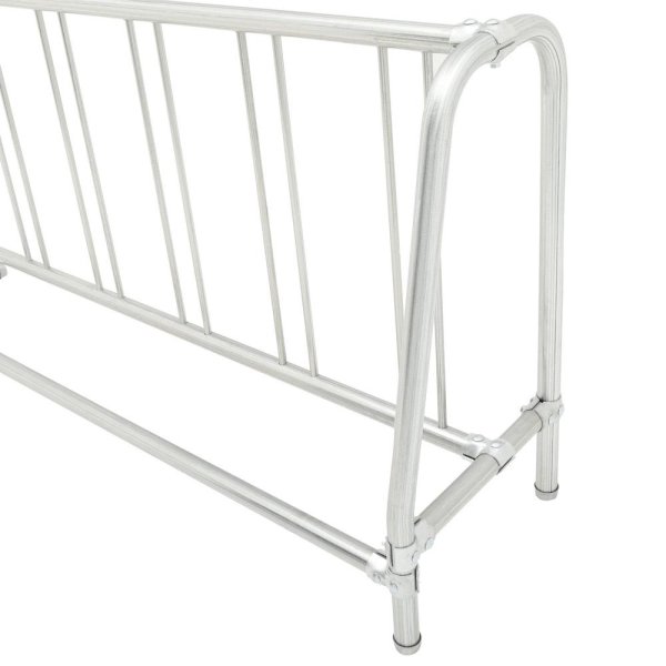 The Traditional Single-Sided Bike Rack is constructed using 1-5/8 in. steel tubing with 5/8 in. spacers. This bike rack is portable and is 10 ft. long and can hold up to 10 bikes. All hardware is zinc plated.