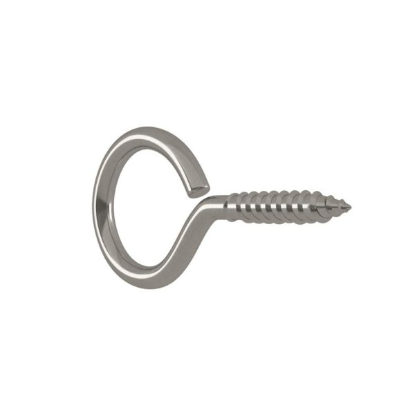 The #10 x 1-3/8 in. Stainless-Steel Screw Eye is great for wood applications. The screw eye is easy to install and features durable stainless-steel construction. The design includes a lag screw at the threaded end and a loop at the other end.