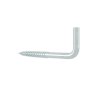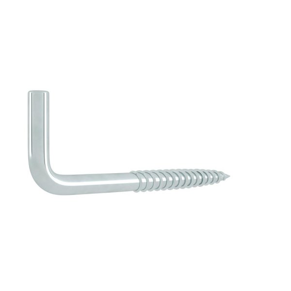 This Zinc-Plated Square Bend Screw Hook is formed with an open hook, fashioned at the non-threaded end and lag threaded screws on the other. Perfect for light-duty applications, this screw is made with steel for added durability. Designed to attach cables or ropes to surfaces, each screw requires a pre-drilled hole for instillation.