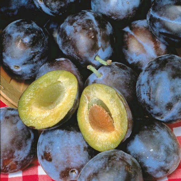 Stanley Plum Tree is a traditional favorite, delivering plums that are sweet enough to dry without being pitted. Stanley is a European freestone type that bears huge crops of plump, dark blue fruits. The tree is self-pollinating and the plums are ready for harvest in September.
