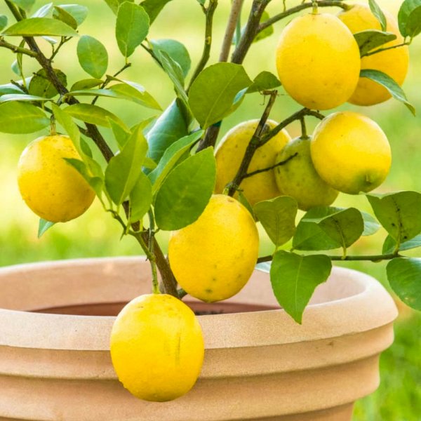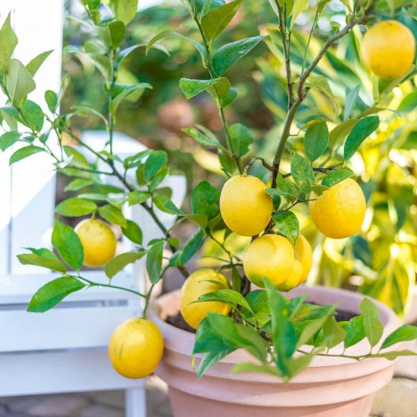 Indoors or out, Dwarf Meyer Lemon refreshes your surroundings with its fragrant white blossoms and lovely yellow fruit. A dwarf lemon tree is perfect for smaller gardens or as an indoor potted plant. Outdoors it can reach a height of 6 ft. to 10 ft. As a potted plant, however, it can be kept to about 4 ft. to 6 ft. Either way, it will produce beautiful, sweetly scented white blossoms and tangy, juicy, edible fruit. If the tree is outdoors, the bees will pollinate it for you. As an indoor plant, it will need to be pollinated by hand. It can also, of course, be brought inside for the winter. Just place it near a window where it can get at least 4 hours of direct sunlight.