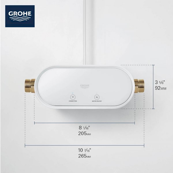 The GROHE Sense Guard water control system continuously monitors water pressure in the pipes, detecting every anomaly from minor leaks to a major burst. Once a pipe burst is detected, the water supply is automatically shut off and an alert is sent to your smartphone. AqualQ self-learning algorithm learns your patterns of water consumption and alerts you if your water consumption is higher than usual, even detecting minor leaks and notifying you on your smartphone. GROHE Sense Guard also monitors changes in temperature and water pressure to help prevent frost damage. Grohe Sense Guard connects to your home WiFi network. In the case of a connectivity loss, GROHE Sense Guard continues to protect your home by shutting off water in the event a pipe burst occurs.